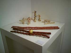 Ako protipól návrhu pre sériovú výrobu spomeniem využitie anomálií materiálu (svory – zavalené drevo na odpílenom pníku, korenice – buľvy na koreni, vyvŕbené drevo). Vďaka ich použitiu je dielo jedinečné. V niektorých objektoch prevažuje remeslo nad dizajnom (klobúky), v iných zas naopak (vemienka, komíny).